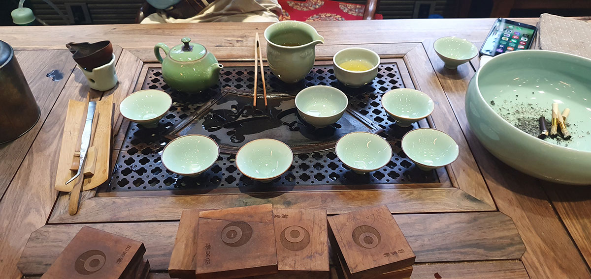 Fuimos siempre acogidas con mucha simpatía y recibidas con la tradicional y convival preparación del té “gon fu cha” (literalmente “arte del té”). Tal vez fue ese nuestro primer contacto con la cerámica China, a menos que haya sido en algún restaurante popular dónde los vasos de cristal y la vajilla en porcelana vienen herméticamente sellados en celofán y se abren con los palitos chinos. La increíble diversidad de la gastronomía china iguala a la de su cerámica, ambas omnipresentes en aquel país continente, para nuestra gran felicidad.