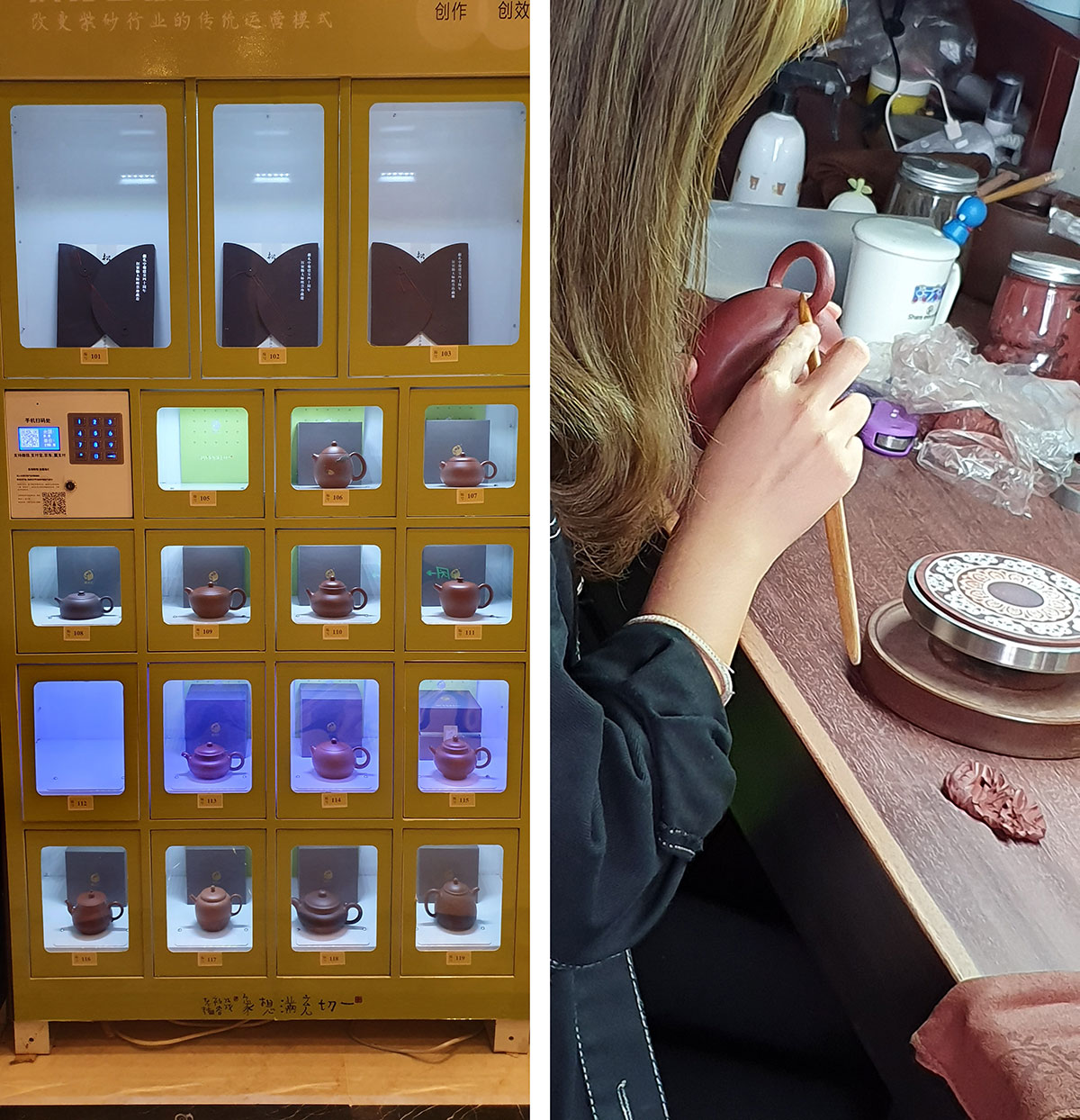 Las legendarias teteras en gres rojo de Yixing (provincia de Jiangsu), producidas desde el siglo XVI, se distinguen por su pequeño tamaño. Hoy en día se venden en precios astronómicos para coleccionistas, pero también se consiguen modelos a un precio módico, incluso en distribuidores automáticos dentro de los hoteles: otro ejemplo de la extrema modernización china.