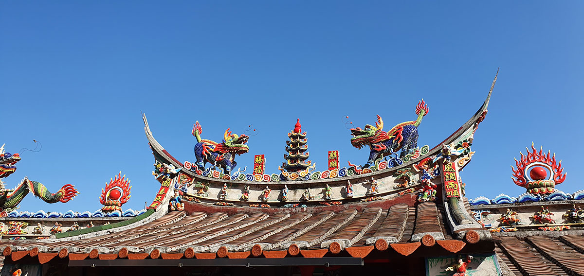 En la arquitectura de los templos, la cerámica colorida está presente, sobre todo en los techos rematados por esculturas de animales protectores.