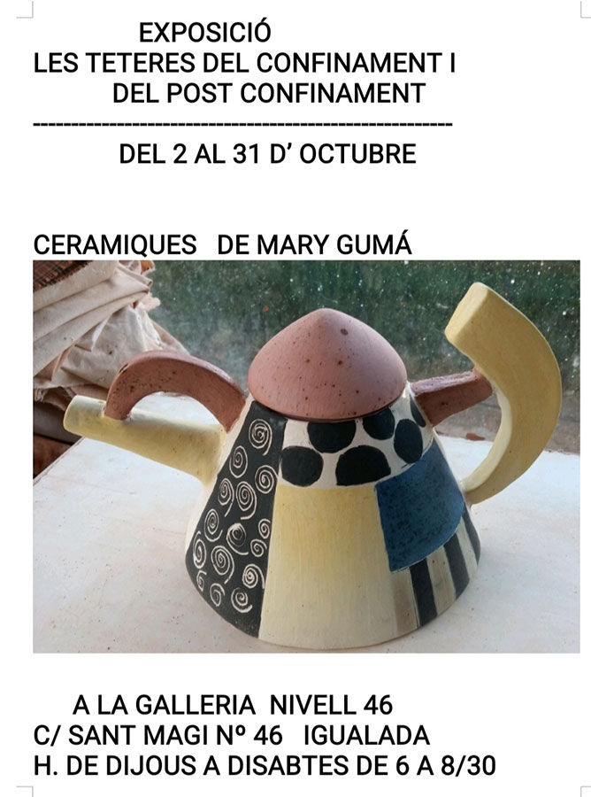 Del 2 al 31 de octubre se podrá visitar en la Galería Nivell 46, de Igualada, Barcelona, la exposición titulada “Les teteres del confinament i el post confinament”, de Mary Guma
