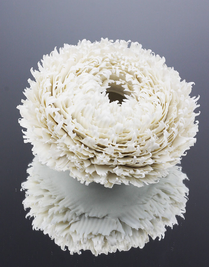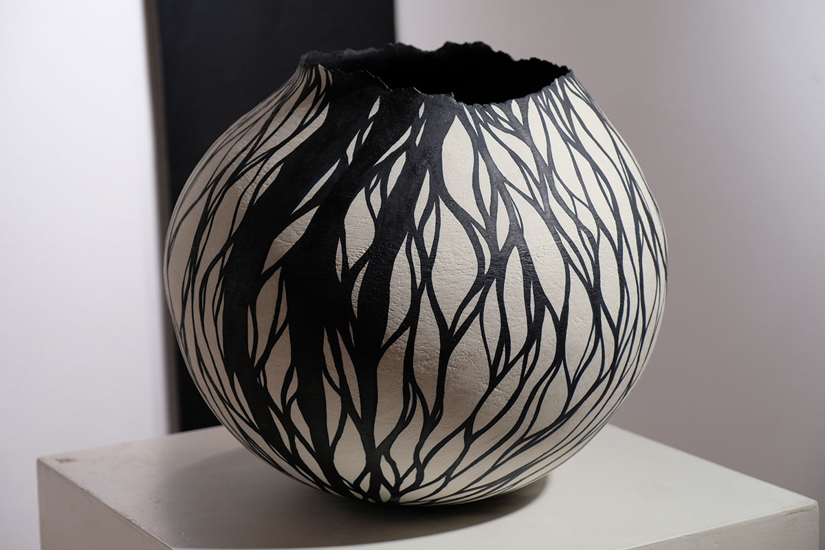 Sin embargo, la cerámica no se desprende totalmente del legado del jarro, de la forma de contenedor: lo reinterpreta con nuevos materiales y opciones creativas, dándole un sitio en nuestra sociedad. Recipientes inusuales, formas insólitas y preciosistas juegan —ahora sí, abiertamente— con el vacío, con la nada. Lejos del horror vacui de otras épocas, la nuestra es una sociedad donde el vacío, la sombra, el espacio, han recuperado su sentido en el imaginario colectivo, y las piezas que presentamos nos permiten reflexionar sobre ese juego filosófico.