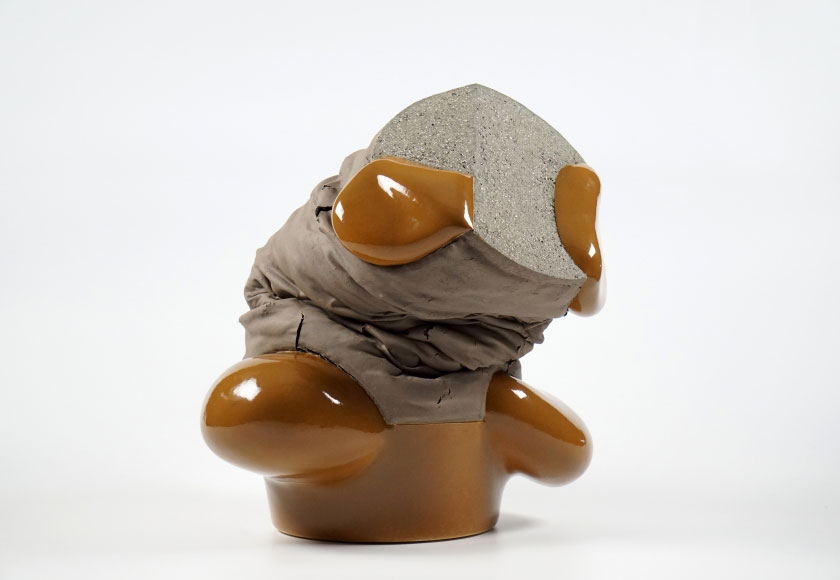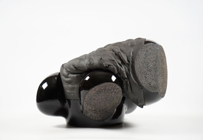 “Las esculturas que presento para la muestra resaltan el uso de la cerámica como un sujeto activo en la creación artística y ponen en cuestión los límites difusos entre materia y forma. En este sentido, se desestabiliza la precomprensión de la única función de la materia como vehículo de las ideas, formando esta parte activa de la construcción del volumen final del objeto.