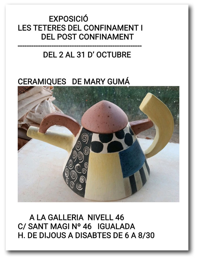 Del 2 al 31 de octubre se podrá visitar en la Galería Nivell 46, de Igualada, Barcelona, la exposición titulada “Les teteres del confinament i el post confinament”, de Mary Guma