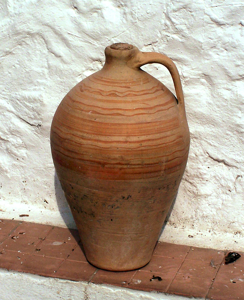 Este cántaro, de unos 50 cm de alto, destaca por la pureza de su forma y por su decoración, que Natacha Seseña investigó por su similitud con la decoración de la cerámica Íbera. Actualmente todavía quedan varios talleres en Priego.
