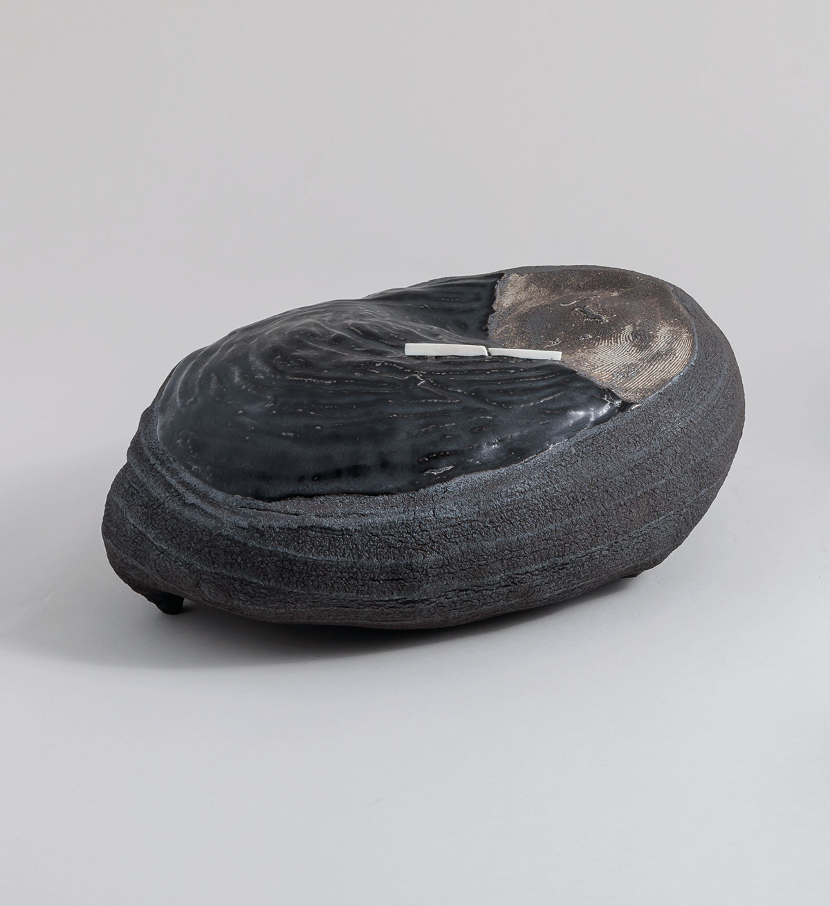 Jean-Paul Azaïs. “Cloche et bols coques”. Barniz natural de arcilla y barniz amarillo. (©Galerie Capazza.)