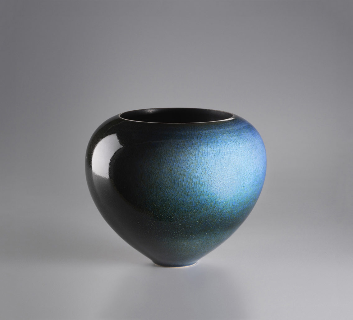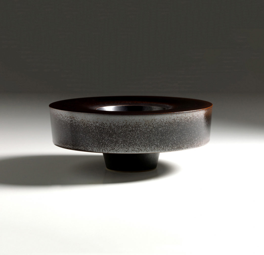 Thomas Bohle, “Mushroom Form”, 2016. Exterior con esmalte tenmoku, interior con negro mate. Diámetro, 35 cm; alto,10 cm.