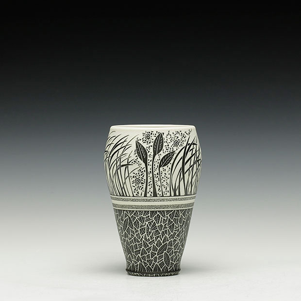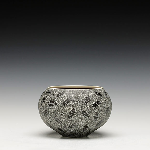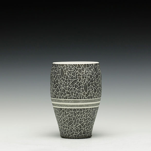 Becky Lloyd utiliza una técnica centenaria llamada esgrafiado para crear patrones y diseños muy intrincados. Cada pieza de porcelana torneada a mano está recubierta con una terra sigillata negra. Posteriormente Becky utiliza un cuchillo muy afilado para grabar sobre la sigillata y exponer la porcelana blanca de debajo. La artista comenta: “Esta técnica me permite disfrutar de mi pasión por el diseño y desafiar mis habilidades al mismo tiempo”.