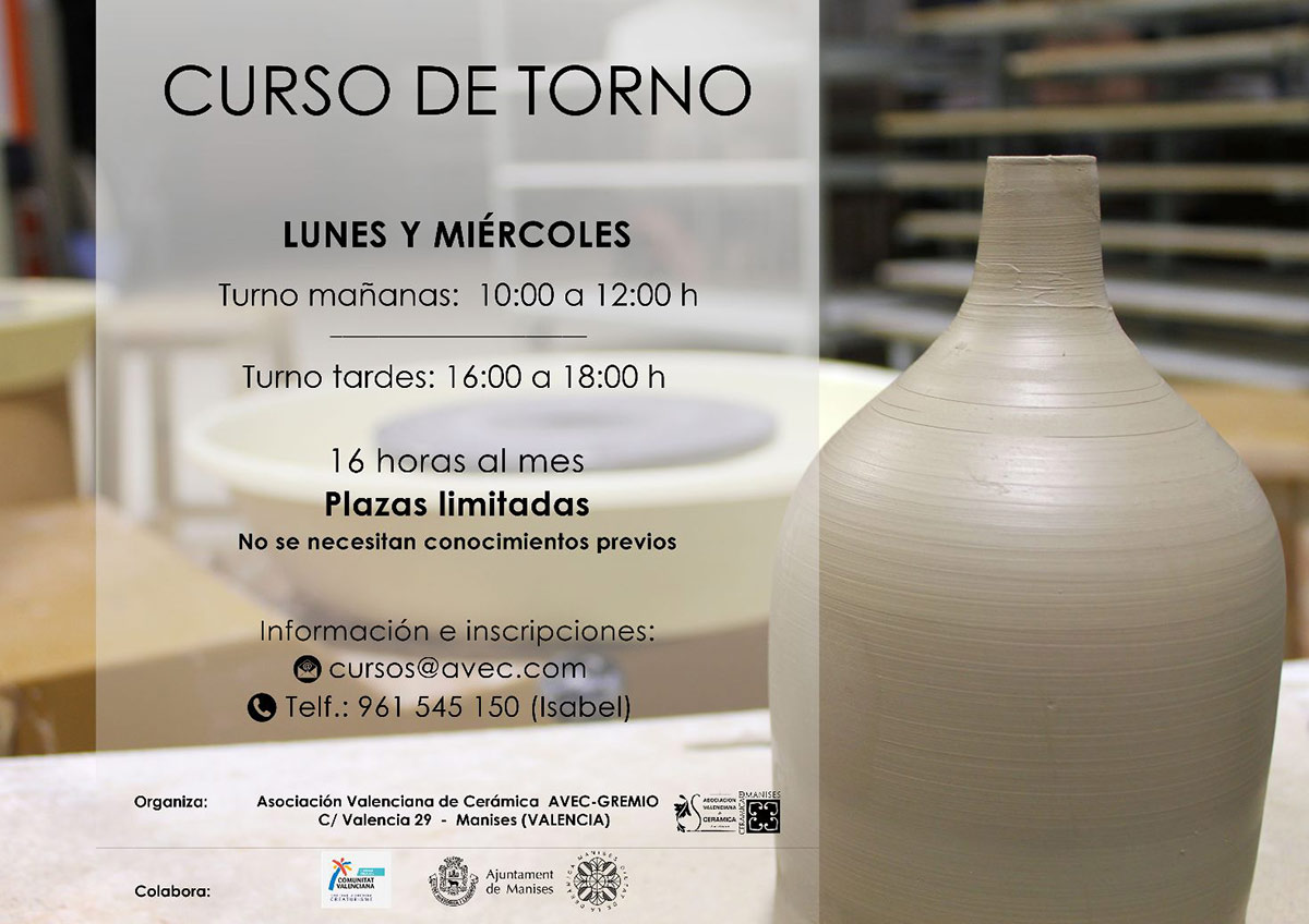 La Asociación Valenciana de Cerámica AVEC-Gremio presenta el curso de torno que se imparte los lunes y miércoles en las instalaciones de esta asociación en Manises, Valencia