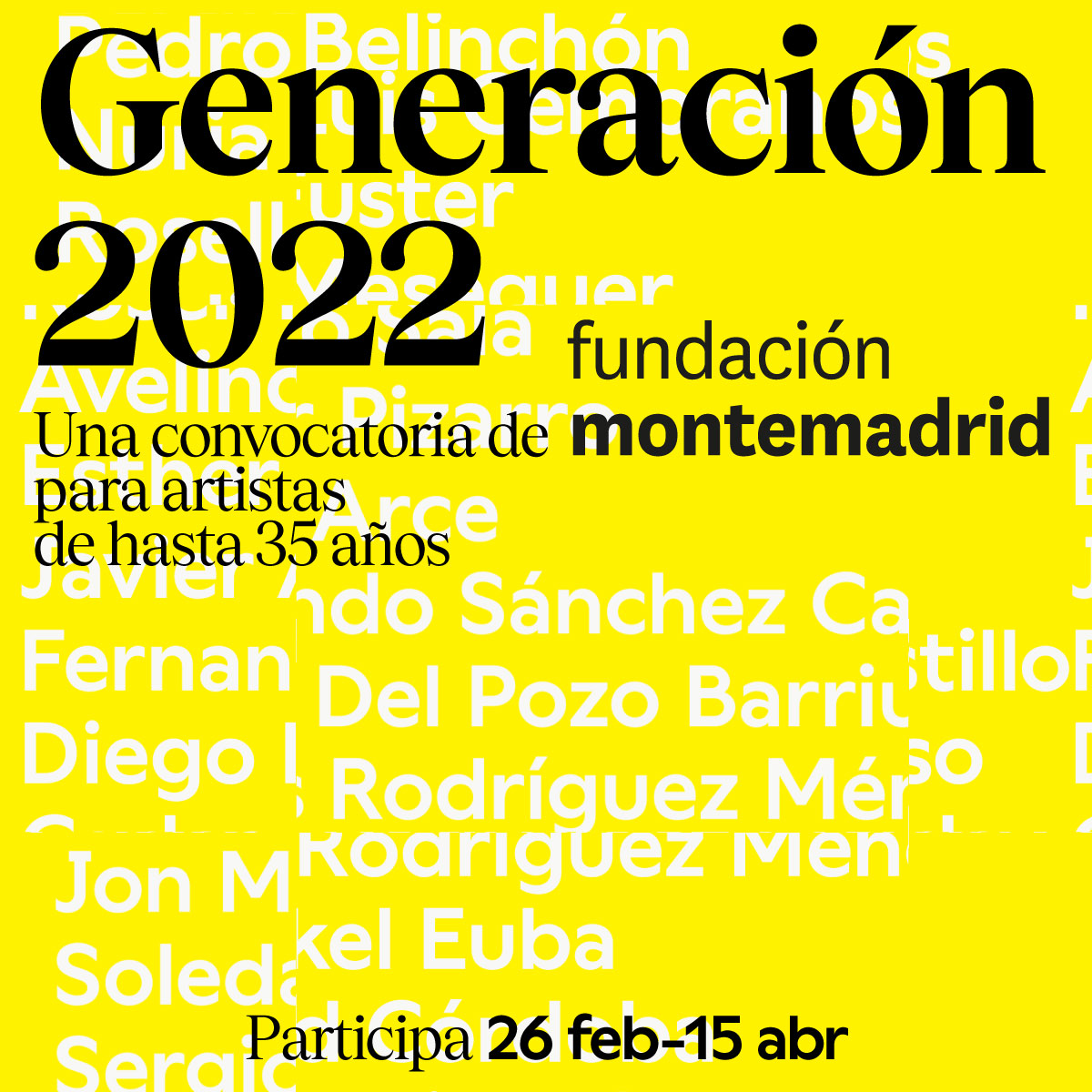 El plazo de la convocatoria de Generación 2022 es del 26 de febrero al 15 de abril de 2021. Los artistas cuyos trabajos sean seleccionados obtendrán una dotación de 10.000 euros cada uno. El jurado estará compuesto por profesionales del mundo del arte y será el encargado de seleccionar hasta 8 trabajos que formarán parte de Generación 2022.