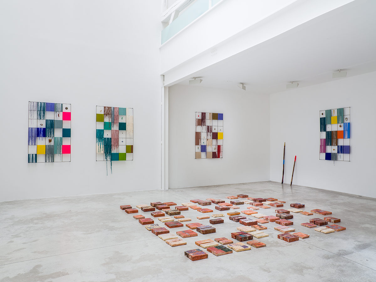 “The library of encoded time” (detalle), 2017. Esmalte sobre ladrillos antiguos. 3 x 22 x 12 cm cada uno. (Foto: Claudia Ciacciofera.)