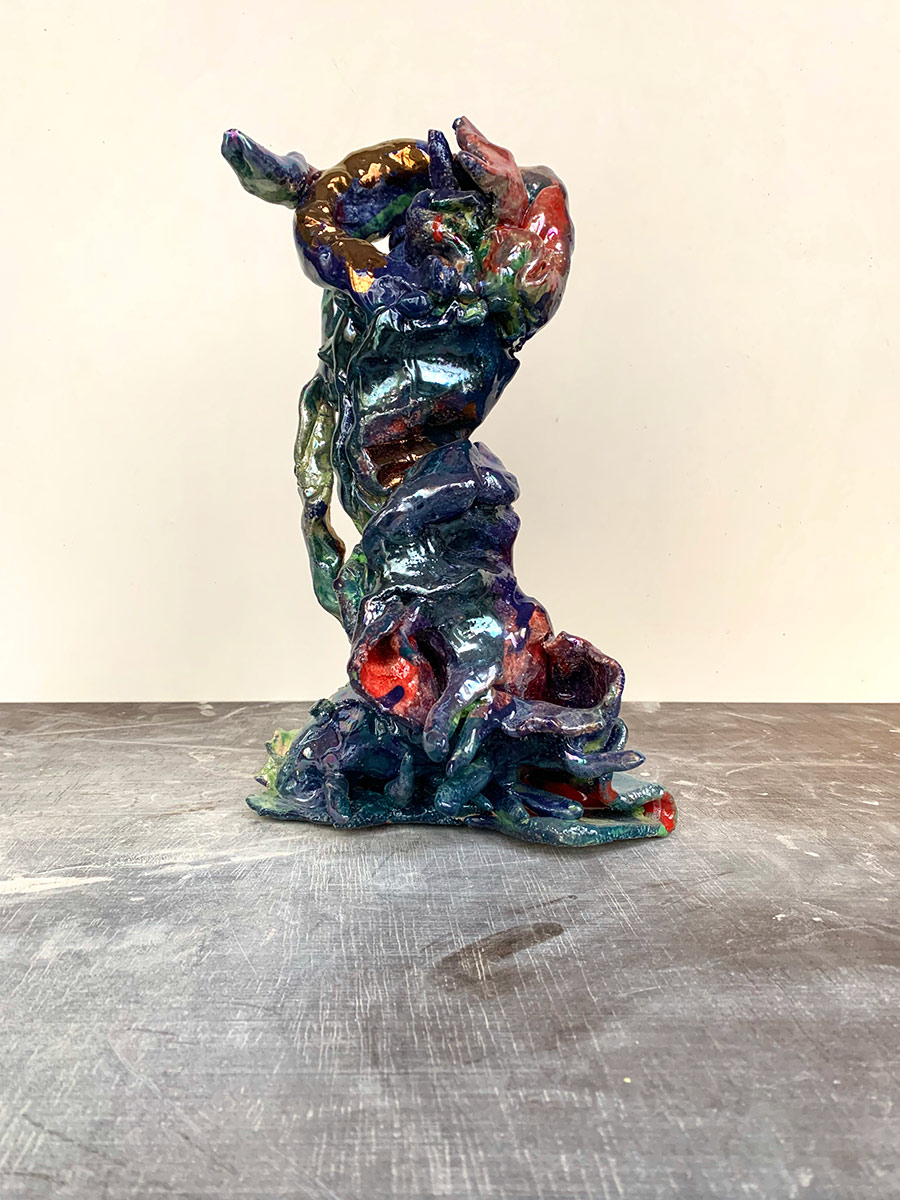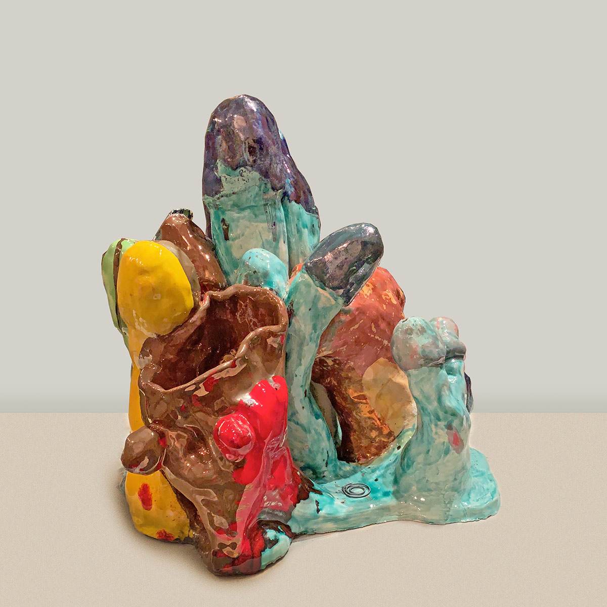 Por otro lado encontramos también otro cuerepo de obra cerámica en la que Ciacciofera se acerca también a una abstracción orgánica, que, desde el punto de vista cerámica más formal, sorprende por la ingenuidad de la técnica usada, ya que son exculturas modeladas de pequeño tamaño, sin la más mínima pretensión técnica ni artificio estético, que se completan ademas por una paleta de colores en ocasiones estridentes.