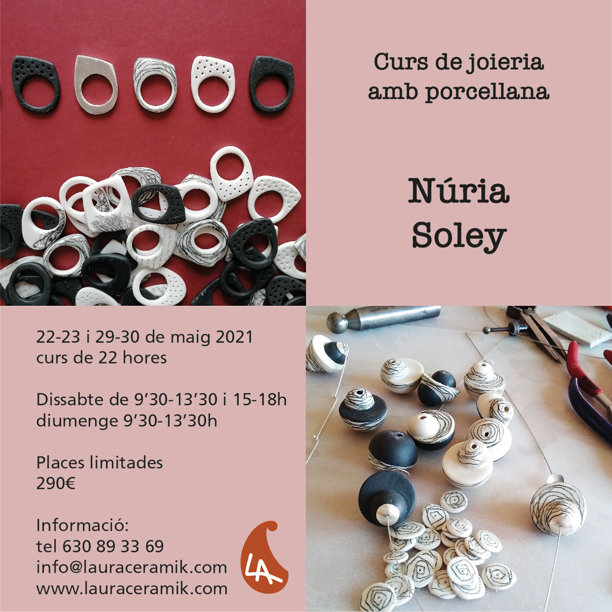 Del 22 al 30 de mayo se celebra en el taller Laura Ceramik Espai Creatiu, en La Garriga, Barcelona, el curso de joyería en porcelana impartido por Núria Soler