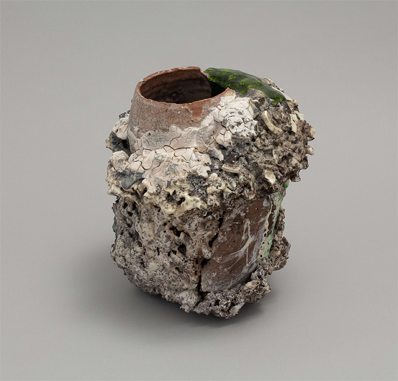 Camille Virot. “Bol-genèse”, 2005. Raku, raku, vidrio y hormigón refractario.(Donación de Denise y Michel Meynet, 2019. Image © Lyon MBA – Photo Martial Couderette.)