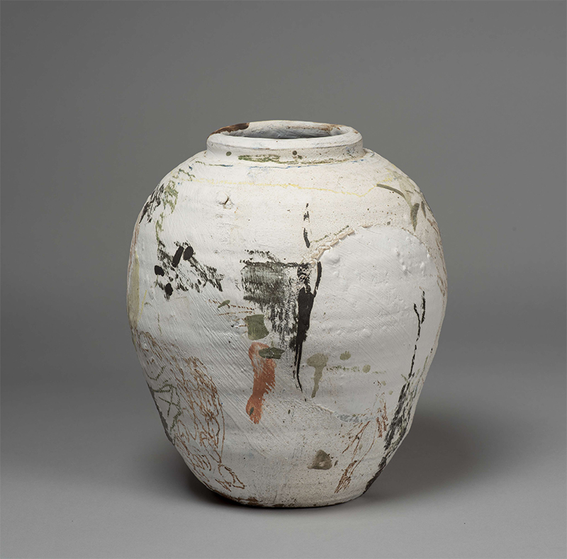 Claude Varlan. “Petit vase”, 1999. Gres y engobes, óxidos y cenizas. (Collection particulière. Image © Lyon MBA – Photo Martial Couderette.)