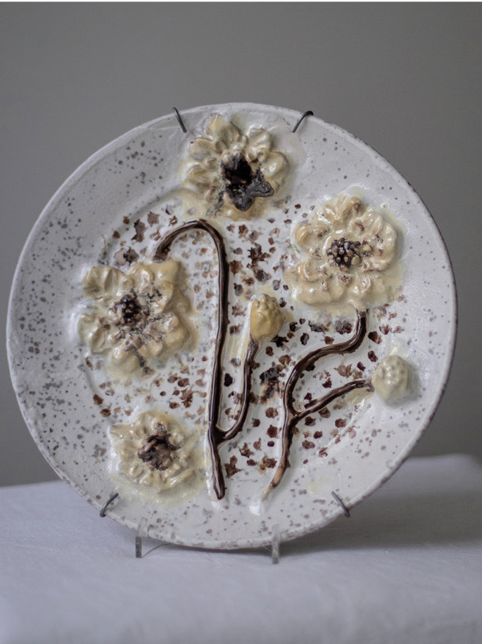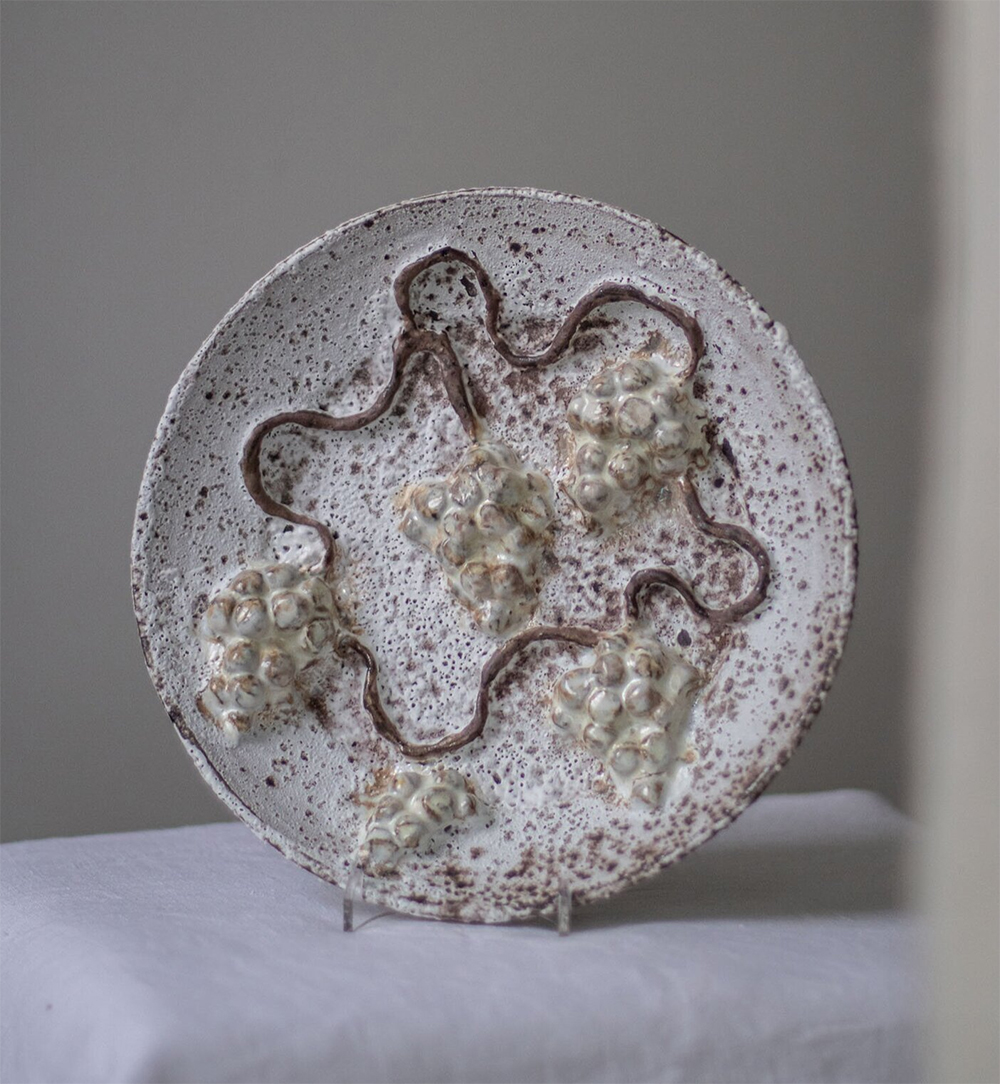 Exposición individual de la artista cerámica sueca Kina Björklund. En la obra de Kinabundan las referencias históricas, la decoración que se puede observar en cerámicas del siglo XVIII, encajes antiguos, broches y ferretería antigua (su hermana es anticuaria). Kina usa estas “herramientas” para estampar sus platos y tazones. Utiliza arcilla de terracota y esmaltes transparentes blancos, que parecen la guinda de un pastel.