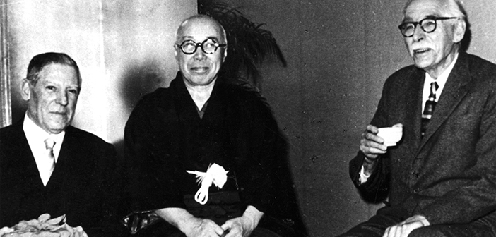 Josep Llorens Artigas, Hamada Shoji y Bernard Leach, en la boda de Joan Gardy Artigas e Ishikawa Mako, 1962. Fundació J. Llorens Artigas.
