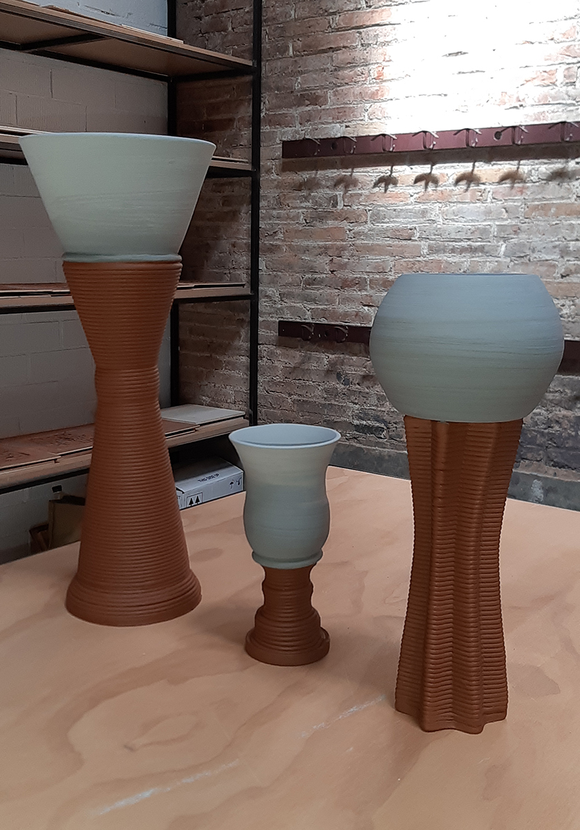 Su trabajo muestra cómo pasado y presente se unen abriendo nuevos caminos en el proceso de creación y realización de una pieza. Con el asesoramiento de Mar Marcelino, une dos técnicas tan diferentes como el torno y la impresión 3D en un proceso de investigación y aprendizaje que le abre las puertas a nuevas e infinitas creaciones sin rehuir, en ningún caso, el trabajo artesanal del que es heredera.