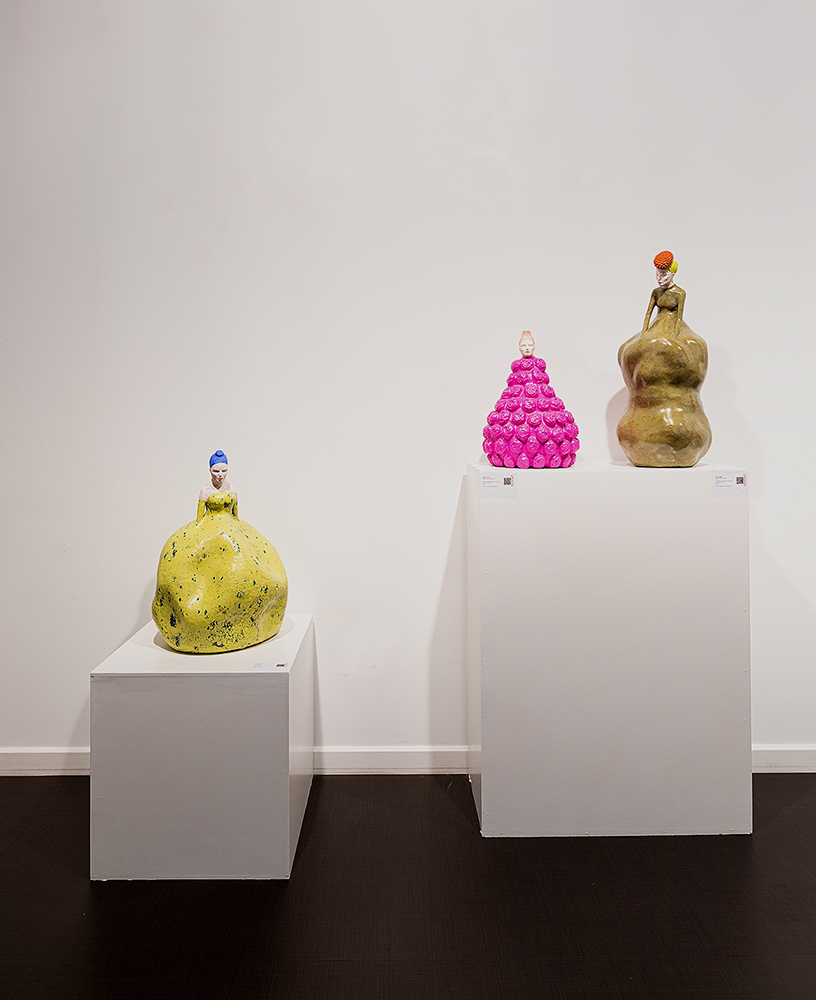 “Esta muestra “supone un intento de hibridar y armonizar cuerpo, objeto y pensamiento”; afirma el artista: “El título de la exposición está tomado del término en latín aequilibrium, pues todas las piezas comparten la idea de fragilidad asociada al desequilibrio. Así, tanto los cuerpos, personajes y cabezas luchan por mantener la posición, el equilibrio, tanto en la postura que describen como en la mente”. De este modo, aparecen sus amolachadas, equilibristas, bailarinas, orejudas… figuras o más bien “figurines” -como él se refiere a gran parte de estas piezas al mostrar un intenso vínculo con el mundo de la moda- que tratan de mantenerse estables tanto en su postura corporal como a través de la meditación, con sus característicos párpados cerrados, en el frágil discurrir de la vida.”