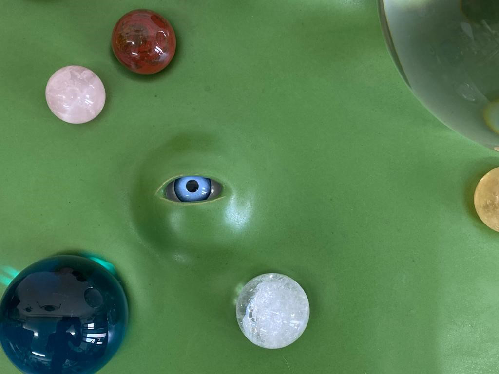 Las piezas expuestas, en sintonía con la exposición y ciclo Un encuentro vegetal que también se puede visitar en La Casa Encendida, han sido realizadas artesanalmente con materiales naturales como la arcilla, la arpillera, la cera de abeja, el agua, el vidrio soplado a mano o la madera e invocan a los cinco elementos: un abanico de fieltro representa el aire; una marioneta de vidrio soplado sostiene el agua; una vela encendida escucha con un par de orejas humanas fundidas trayendo el fuego al espacio; cinco taburetes de arcilla aluden a la tierra; dos grandes ojos dorados observan la interacción entre las obras y el espectador, representando el éter, el quinto y más poderoso elemento muchas veces representado como una deidad.