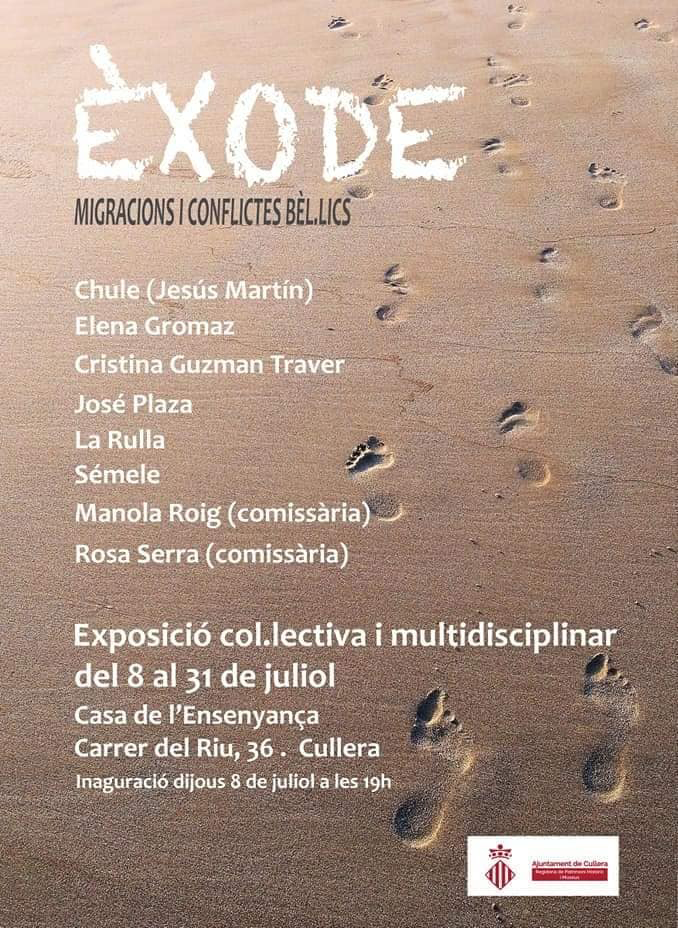 Del 8 al 31 de julio 2021 se puede ver, en la Casa de l’Ensenyança, de la ciudad valenciana de Cullera, la exposición colectiva titulada -Éxodo, migraciones y conflictos bélicos-