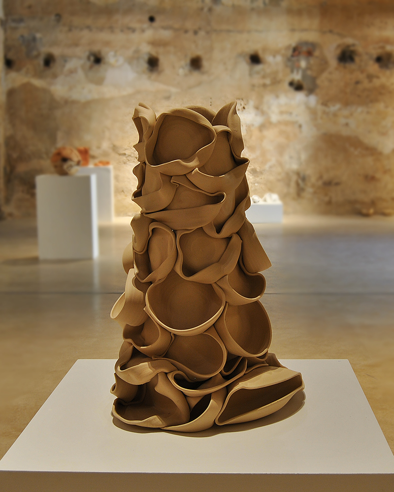 En esta exposición, nos encontramos en presencia de una serie de esculturas realizadas con un material primigenio que ha acompañado a la especie desde sus comienzos. Un elemento natural, puro y versátil, tanto es su concepción, como en las formas que desarrolla, por ello la arcilla ha sido transformada para interpretar de manera tangible nuestros pensamientos creativos, nos habla de recorrido y evolución.
