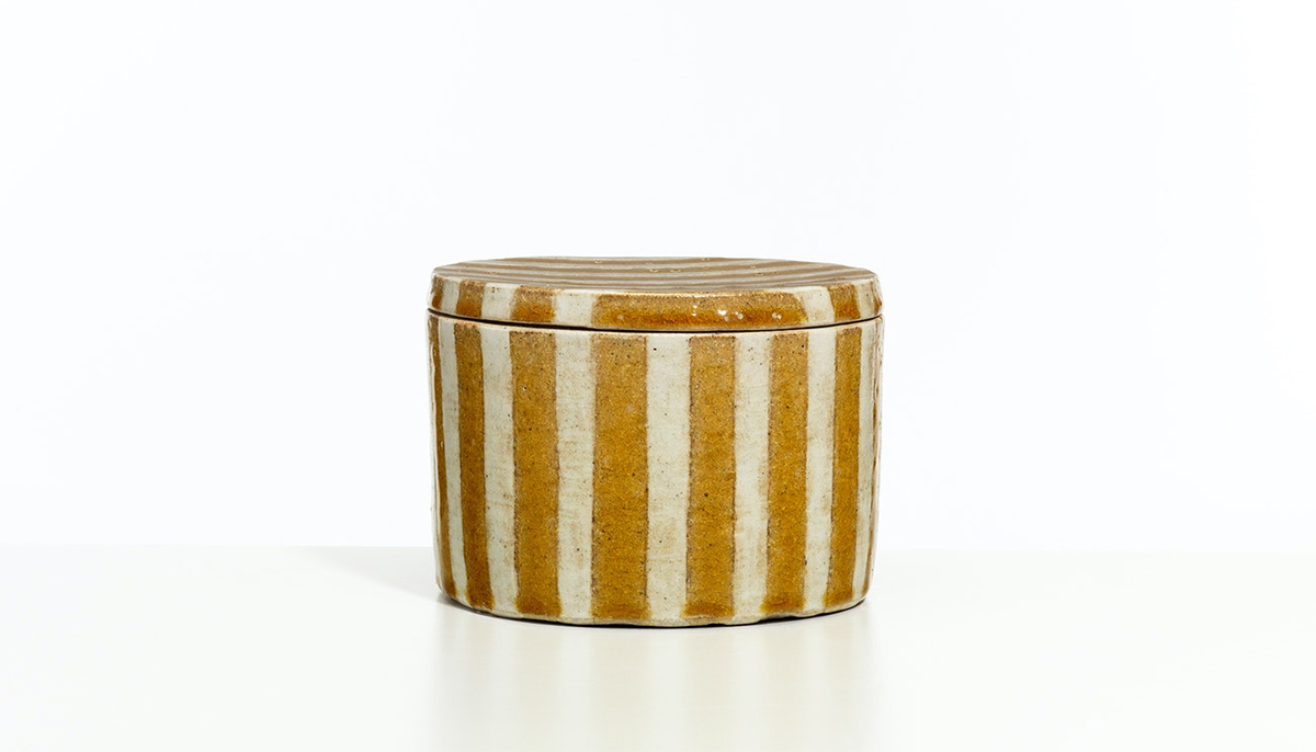 Gertrud Vasegaard nació en Rønne, en la isla danesa de Bornholm en 1913. Habiéndose criado en una familia de alfareros, ella y su hermana, Lisbeth Hjorth (Munch-Petersen) fueron las primeras productoras de cerámica de estudio en Dinamarca. Vasegaard utilizó una relajante paleta de colores en sus esmaltes, que se distinguen por su combinación única de simplicidad y riqueza. Reconocida por su contribución a la cerámica, Vasegaard está incluida en el canon cultural danés y representada por varias colecciones públicas internacionales.