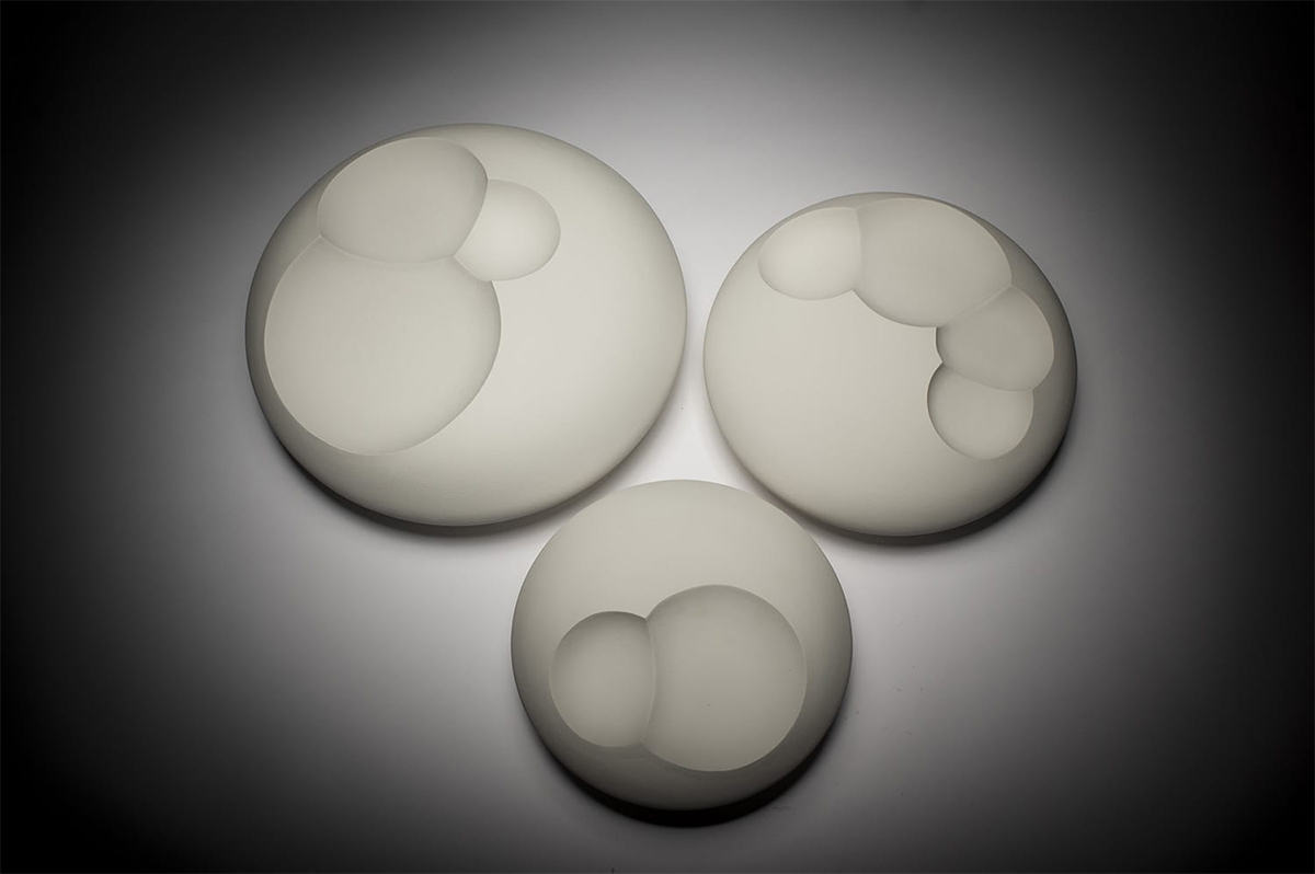 Esta obra, seleccionada en el premio, consta de tres piezas de un deslumbrante blanco, que crean un juego entre concavidad y convexidad que nos remite a los efectos ópticos, la ambiguedad de la mirada e incluso a las matematicas.