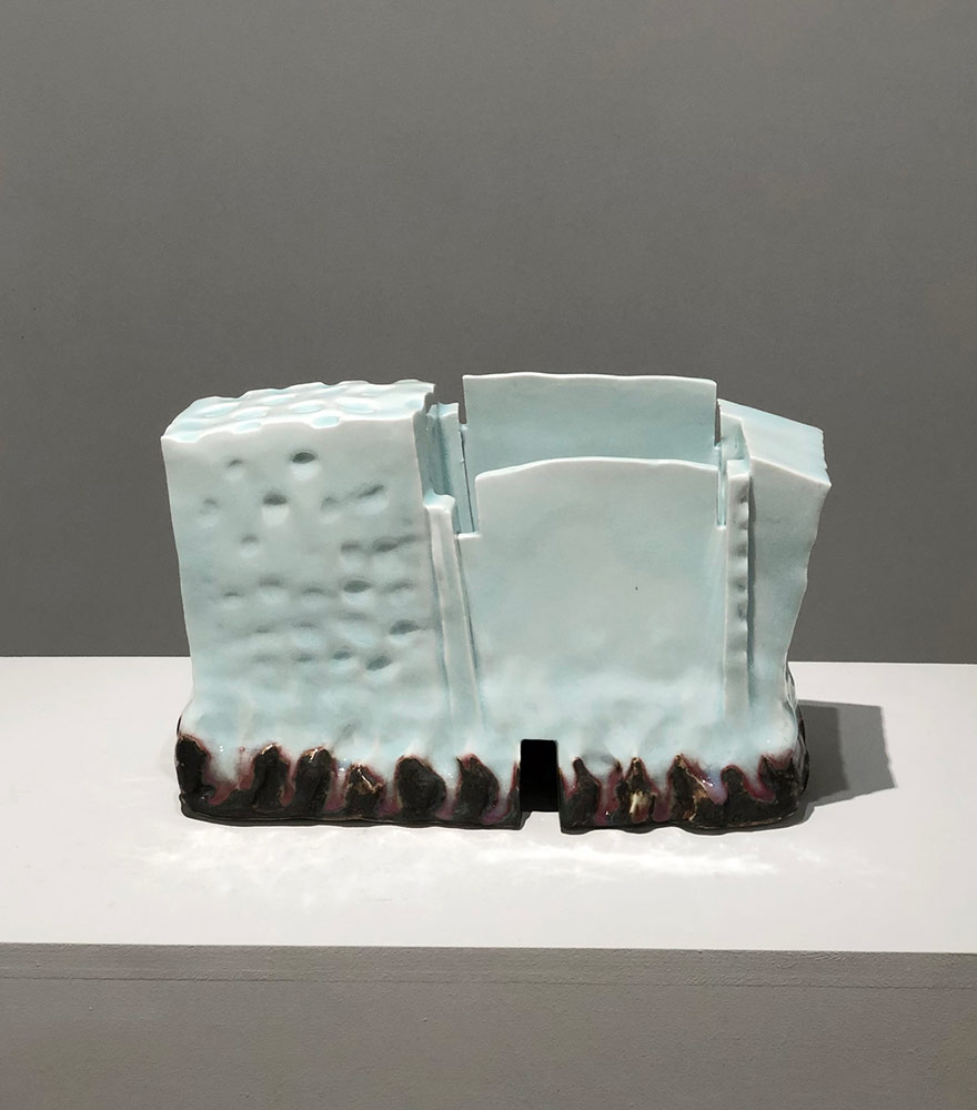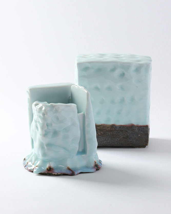 Aunque comenzó revisitando formas originalmente utilitarias, posteriormente orientó su oficio hacia obras más arquitectónicas e instalaciones espaciales, siguiendo los pasos de la vanguardia de “Sodeisha”, y así selló su contribución al arte cerámico contemporáneo. Aunque se inspira en ciertos templos y santuarios, así como en el museo Miho dibujado por Pei, sus obras no son modelos arquitectónicos. A veces cubiertos de dibujos veteados en azul cobalto, son fruto de una práctica espiritual, un lenguaje poético hecho de volúmenes, plenitud, vacío, materiales.