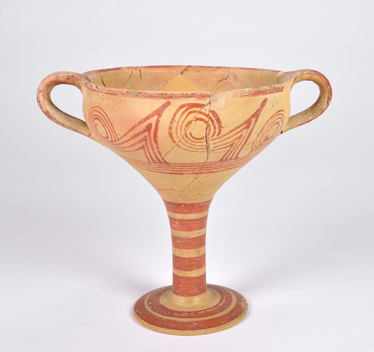 Taza pintada con bandas enganchadas y espirales. Minoico tardío IIIA – IIIB (siglo XIV-XIII a.C. ca.)