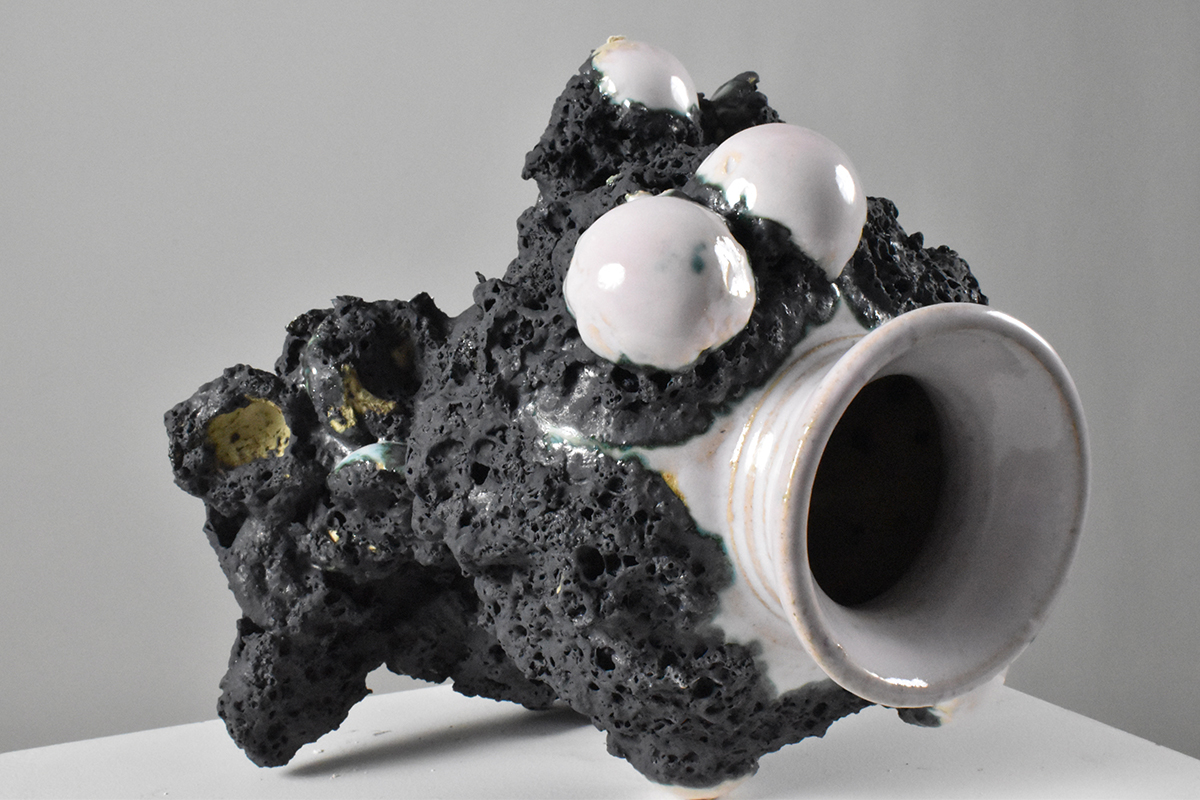 Veo el arte como una intersección de idea y acción, de inspiración e impulso. Las obras cerámicas escultóricas nos remiten a fragmentos arquitectónicos, geometrías tri-dimensionales yuxtaposicionadas con objetos biomórficos.