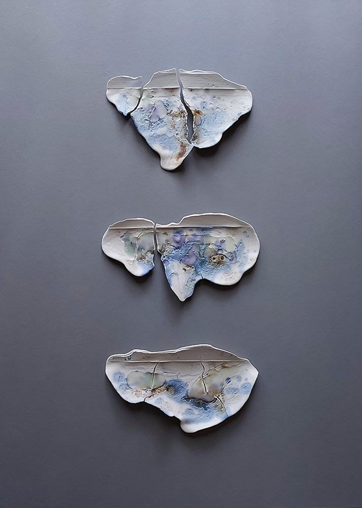 INTROVERSO es un ejercicio de introspección poética (cerámica y fotografía) en que la obra creada por Mónica Rivas Lee parte de la observación de la naturaleza, tanto en algunas de sus formas orgánicas más efímeras y leves (serie El jardín secreto), como en sus más conceptuales trabajos a partir de vertidos de porcelana y gres (serie Cosmogonía y Deriva de Pangea). Y en todo ello los denominadores comunes de la poética y la experimentación, la virtud adaptativa de la materia en estado de fluidez para consolidar en el tiempo envoltorios de barro y fragilidad.