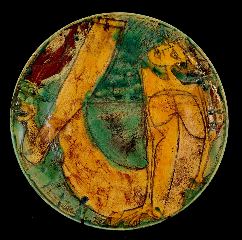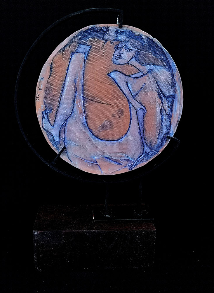En la muestra que nos ocupa, “Con los pies en la tierra”, Tania despliega una diversidad de propuestas: platos esgrafiados, bajorrelieves que juegan con el plano, alcanzando una contundencia no exenta de cierta poética liviandad. En cada obra existe una búsqueda específica en función de lo que se quiere decir, en algunos casos mezcla pastas, incorpora papel, arena, chamotes de distintos tamaños. Puede trabajar la figuración con gran sutileza, como la serie realizada sobre pasta de papel y grabada con óxidos, o en los bajorrelieves donde, sin desaparecer la figuración, prevalece la densidad matérica y un cálido cromatismo; en otras piezas la cerámica dialoga con el hierro o la madera, logrando un conjunto que define a una artista que no esquiva el compromiso de enfrentarse a su tiempo con una obra que la representa.