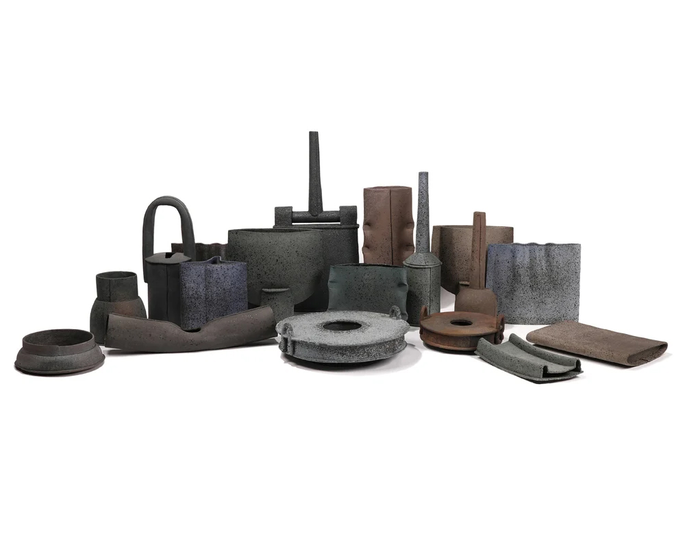 Finamente trabajada y expertamente ejecutada, esta instalación combina 18 piezas individuales creadas con la técnica tradicional de losas de arcilla Yixing. La obra demuestra tanto el disfrute como el dominio del proceso cerámico y las piezas individuales sientan un diálogo conversacional. Una variación en la aplicación de los acabados vidriados crea una gama de hermosos tonos suaves, que enfatizan la cocción final.