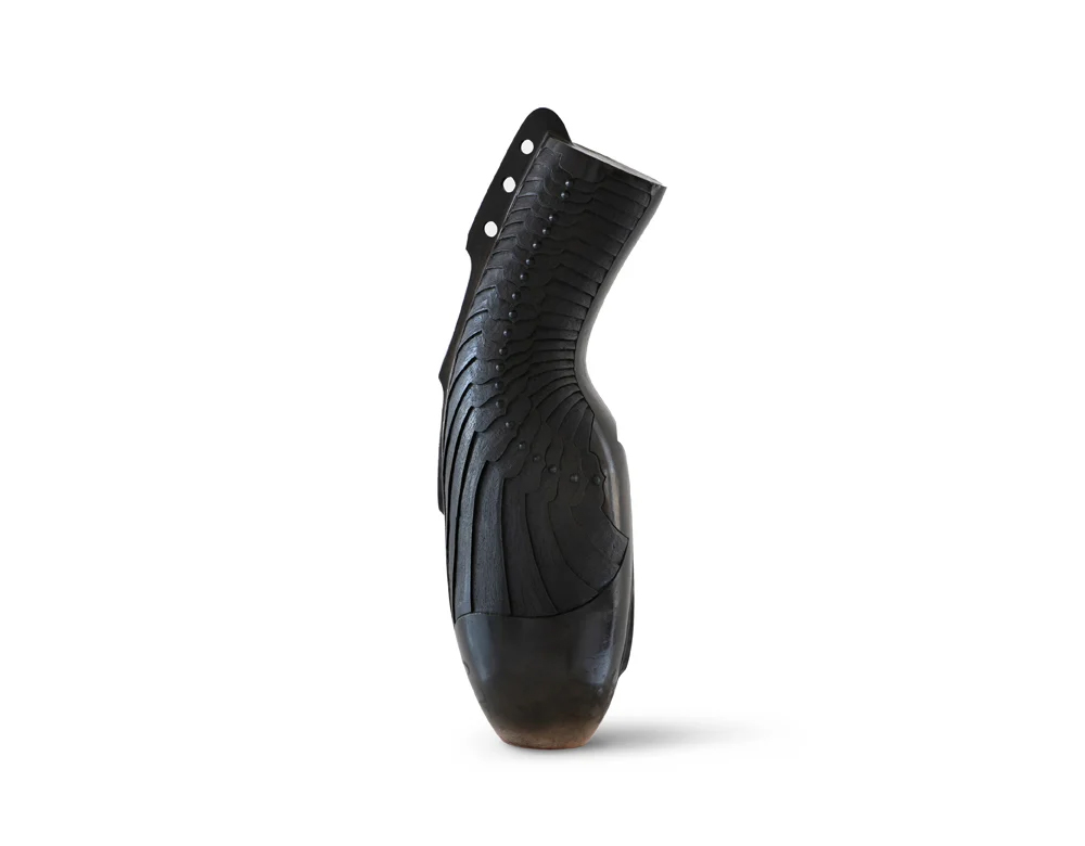 Usando arcilla de origen local y empleando técnicas tradicionales autóctonas del sur de África, como el enrollado manual, el pulido y la cocción con humo, esta vasija forma parte de la serie iQweqwe de Fani, que en isiXhosa significa “corteza”. Haciendo referencia a los exoesqueletos de insectos, un motivo recurrente en el trabajo de Fani, los contornos de la vasija se acentúan mediante un patrón concéntrico repetitivo y se completan con intrincadas marcas y protuberancias tachonadas para crear una pieza atemporal y futurista. Después de una cocción de bizcocho, la vasija se cuece con humo, lo que le da un color negro uniforme.