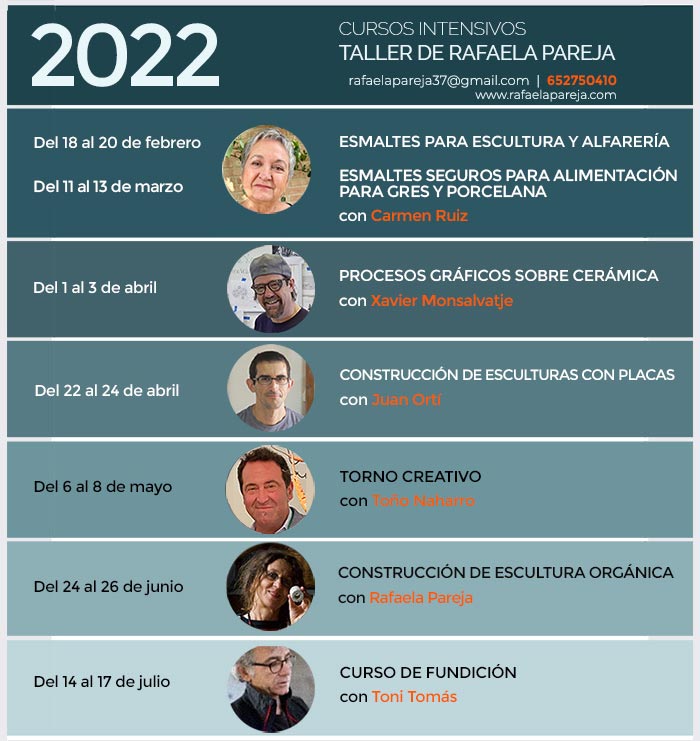 Rafaela Pareja presenta los cursos monográficos que se imaprtirán en su taller de Vinalesa (Valencia), durante la primera mitad de este año, y que contarán con Carmen Ruiz, Xavier Monsalvatje, Juan Ortí, Toño Naharro, Toni Tomás y la propia Rafaela Pareja