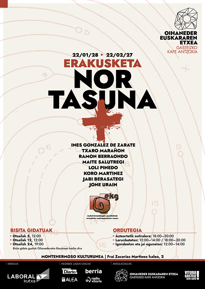 El próximo viernes 28 de enero a las 7 de la tarde se inaugura la exposición: NORTASUNA+ del colectivo EKG, en Oihaneder (Montehermoso Kulturunea), Fray Zacarias Martinez 2, de Vitoria-Gasteiz.