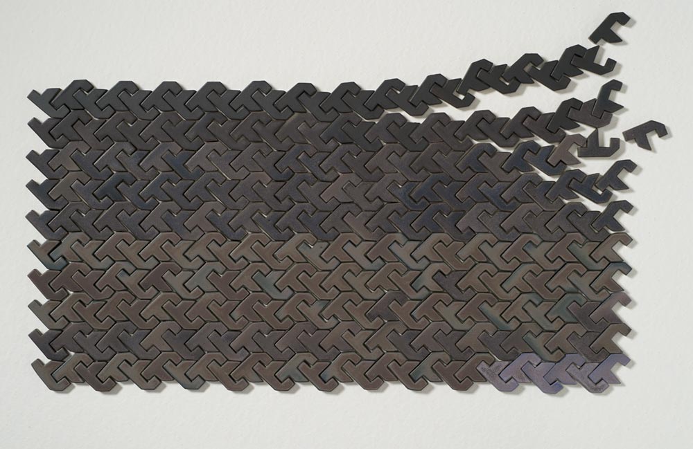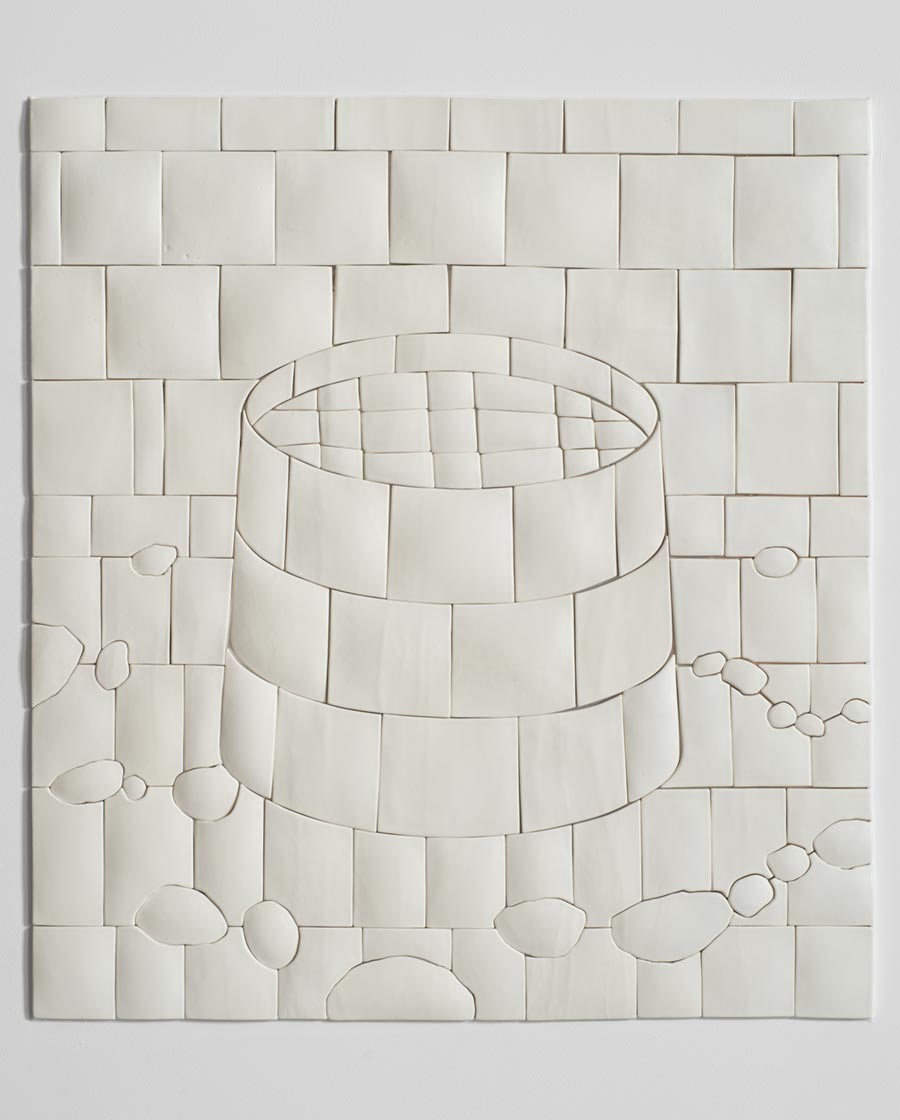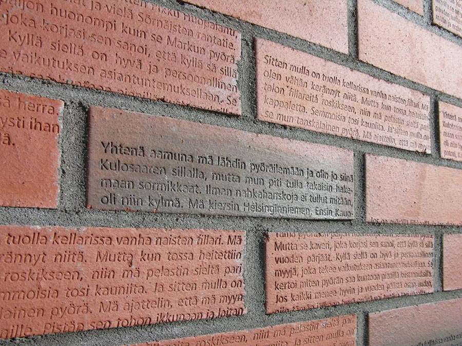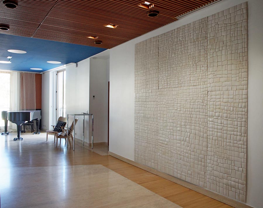 Las piezas de pared y las esculturas se basan en formas geométricas, como ladrillos y cubos, dispuestos juntos para formar desde pequeños arreglos hasta instalaciones más grandes. “Busco la sencillez en mi expresión. Tras un profundo estudio experimental del entorno de mis piezas públicas, siento una gran alegría cuando el proceso de creación fluye fácil y espontáneamente, sin forzar nada. Busco símbolos y formas intemporales, objetos o fenómenos cotidianos que sean comunes y familiares para todos nosotros. Para mí, representan el flujo del tiempo, un camino de nuestra vida en general”. Como artista, Kivivirta considera la arcilla como una compañera: resuena incluso con su más mínimo toque y responde a cada pensamiento, reflejando una variedad de estados de ánimo y temperamentos. “Los materiales naturales son enormemente expresivos. Tengo el deseo de entender las propiedades de los diferentes tipos de arcilla y aplicarlas en mi expresión. Mi paleta de colores es limitada, tonos blancos y grises, negros, pigmentos naturales y óxidos metálicos”.