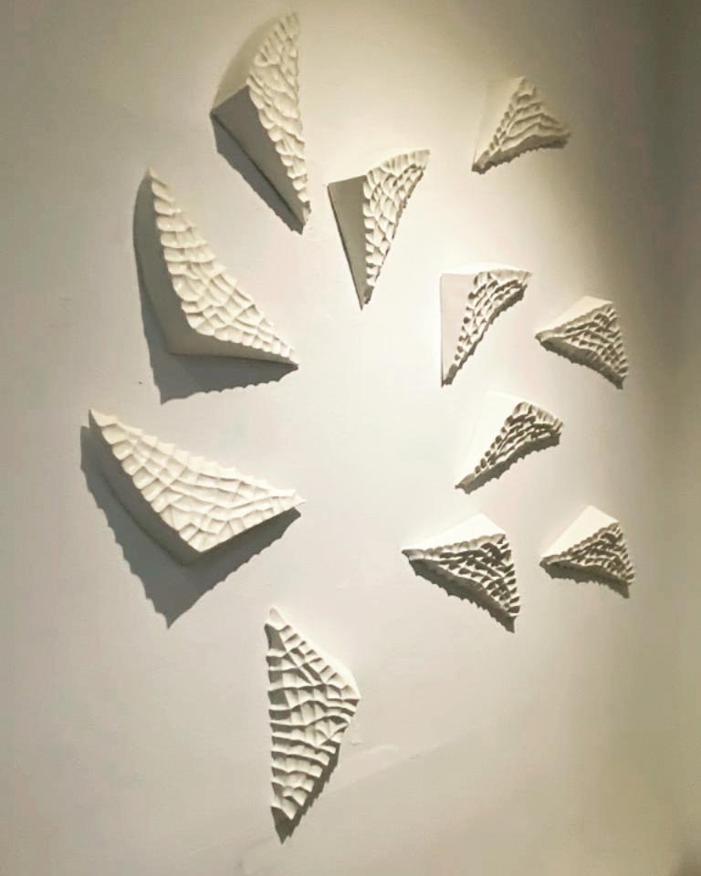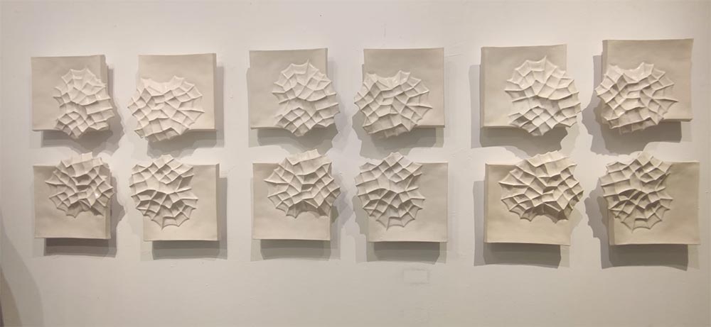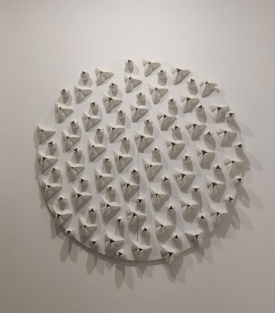El flujo constante de las obras de la artista Mercedes Lirola va mucho más allá de una composición estética perfectamente equilibrada y consustancialmente ordenada. Su proceso creativo casi diríamos que transciende a la obra final ya que se desarrolla de manera rizomática en todos sus componentes y variables. La multiplicidad que aplica a numerosas series no es un mero patrón repetitivo, es el enraizamiento de un crecimiento continuo que deambula de manera vital y virtuosa en cada pieza. Fuera de contextos específicos, las piezas escultóricas, volubles unas, firmes otras, se envuelven entre sí, creando una hilvanada de lenguajes evocadores que se anclan en nuestra mente nada más mirarlos. No se trata de una acción premeditada por la artista, sino de una actuación vital, una necesidad de crear, romper y avanzar hacia múltiples puntos finales, que de nuevo suponen un nuevo inicio de exploraciones creativas, de formas y de fondos.