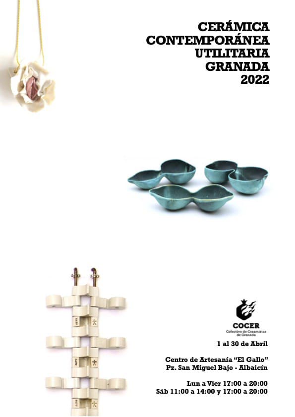 Desde el 1 de abril y hasta el 30, enmarcado en las actividades de los días de la artesanía, el colectivo de ceramistas C.O.C.E.R. Granada inaugura una exposición de cerámica utilitaria contemporánea con una selección de artistas y artesanos de Granada
