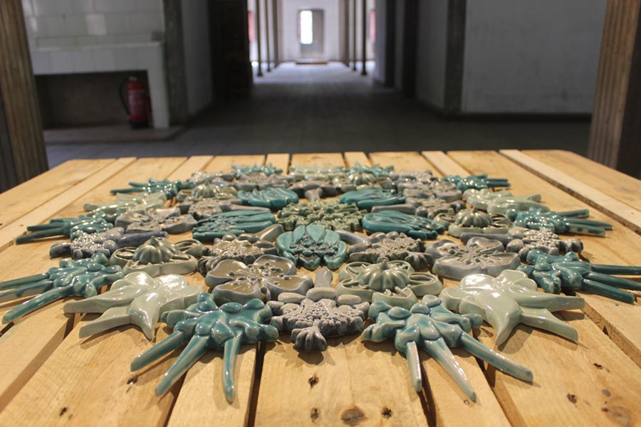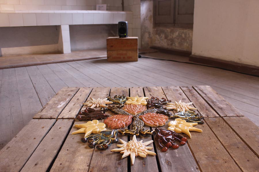 Ambos artistas documentaron el manantial Victoria, la fuente en Aguas de Borines, un antiguo balneario y actualmente una planta embotelladora de agua y destilería en Asturias, en el norte de España. Kay recogió plantas que crecían alrededor del manantial y utilizó un microscopio digital para ampliar la microflora como base para sus diseños basados en azulejos, mientras que Joseph grabó los sonidos del manantial utilizando técnicas de grabación binaural para producir un paisaje sonoro envolvente. Joseph también grabó los sonidos de una cocción de anagama en el Simposio de Cocción de leña de Kohila, Estonia, al que asistieron ambos artistas en 2017. El paisaje sonoro resultante acompaña a los redondeles de Kay de Flora Asturiana cocida con soda en horno de leña y también en oxidación.