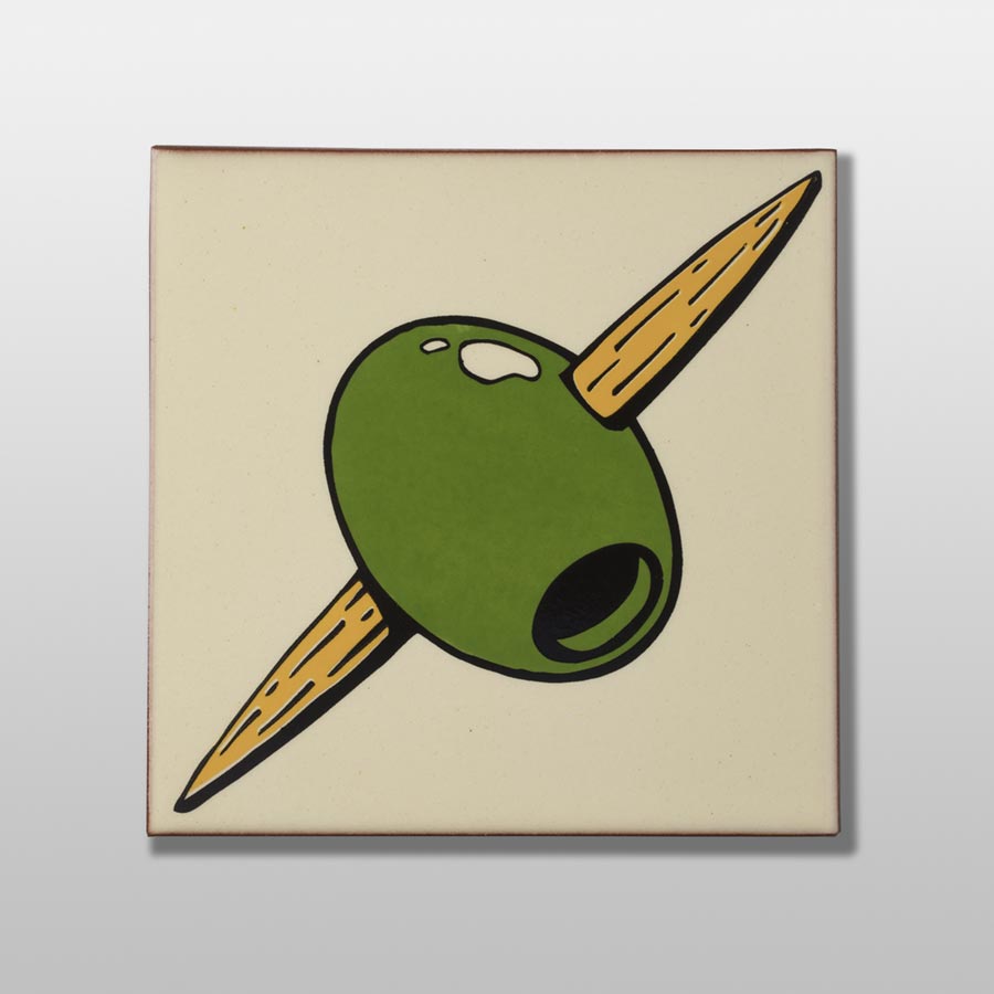 Bussoga Ceràmica. “Olives”, 2019. Cerámica con esmaltes de baja temperatura, tercer fuego. Serigrafía manual. 120 x 60 cm. Donación Bussoga Ceràmica, 2020.
