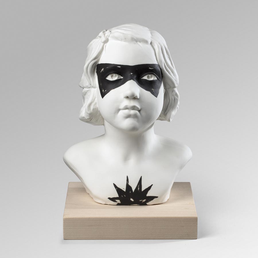 Núria Torres. “Superhéroes”, 2017. Porcelana. Colada. Engobe 27 x 18 x 18 cm. Donación Núria Torres, 2021.