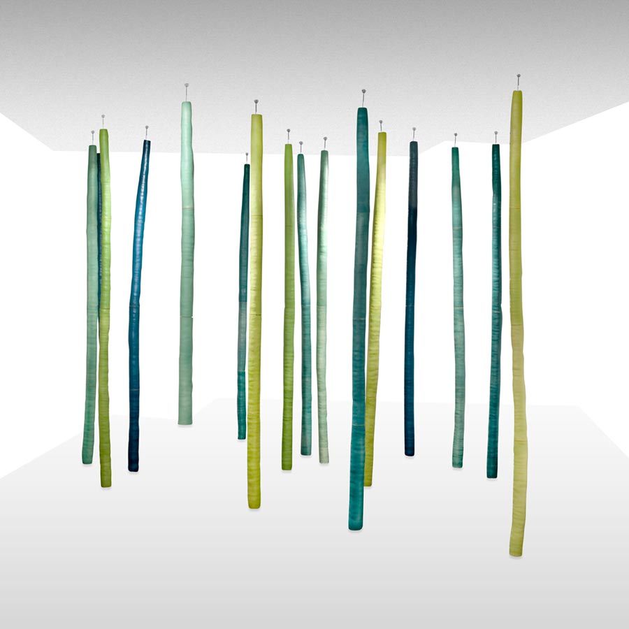 Rosa Cortiella. “Que els arbres no t’impedeixin veure…”, 2007. Instalación. Arcilla blanca. Esmaltes. 250 x 12 cm (cada elemento). Donación Rosa Cortiella, 2021.