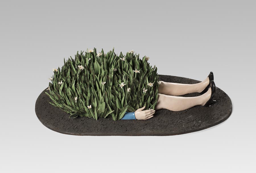 Sophie Aguilera Lester. “Bajo las margaritas”, 2017. Gres, esmaltes. Cocción 1.230 ºC. 50 x 160 x 82 cm. Donación Sophie Aguilera, 2021.