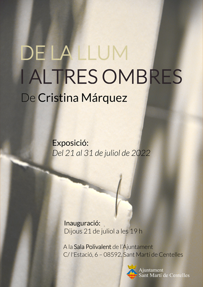 Del 21 al 31 de julio de 2022, se puede visitar en la Sala Polivalente del Ayuntamiento de Sant Martí de Centelles (Barcelona), esta exposición de la ceramista Cristina Márquez, titulada “De la llum i altres ombres”