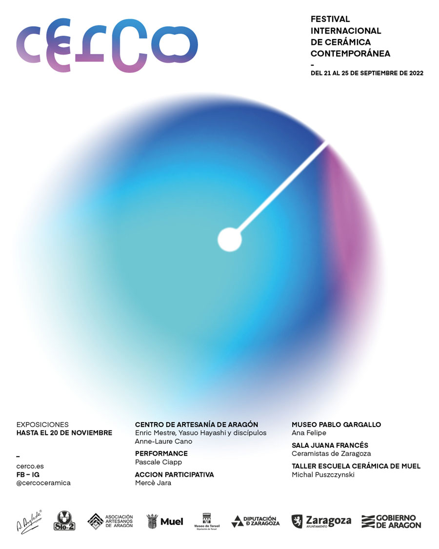 La programación de CERCO 2022 se concentra los días 21 al 25 de septiembre en Zaragoza, con la clausura el 26 de noviembre , entre otras actividades se podrán ver las exposiciones de Ana Felipe Royo, Anne-Laure Cano y la colectiva “Relación cerámica”