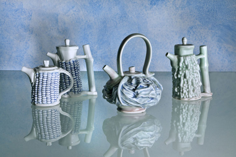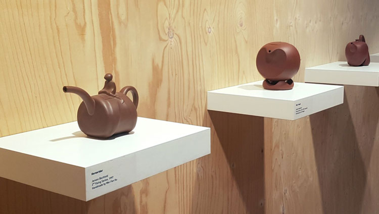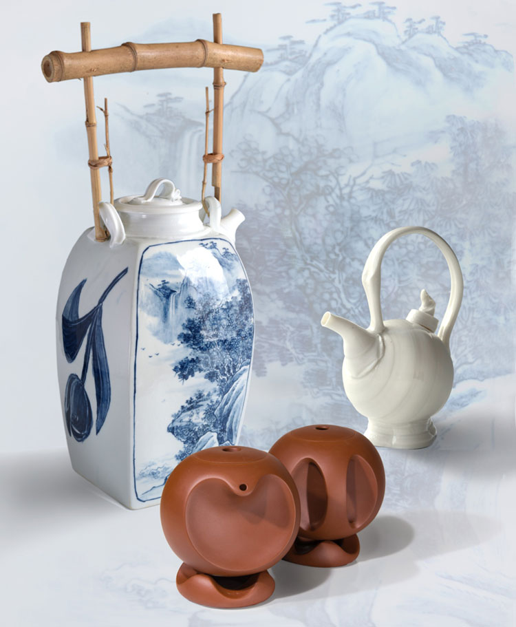 El denominador común de la exposición “Inspirado por China” es la tetera, un producto originalmente chino que llegó a Europa junto con el té a finales del siglo XVI. Estos cuatro artistas tienen una conexión con la tetera en mayor o menor medida, y cada uno, a su manera, trabajó de forma independiente con la porcelana y la arcilla en China. Se inspiraron en “China”, palabra que también puede utilizarse para indicar la porcelana china. En Jingdezhen, Dehua y Yixing hicieron su arte de tetera con la materia prima local, que varía mucho de una ciudad a otra. Para resaltar esas diferencias, la exposición está dividida por ciudades. Cada capítulo se abre con un objeto de cerámica típico de esa ciudad, generosamente cedido por las colecciones históricas del Sr. Fei Yuliang o de Royal Delft.