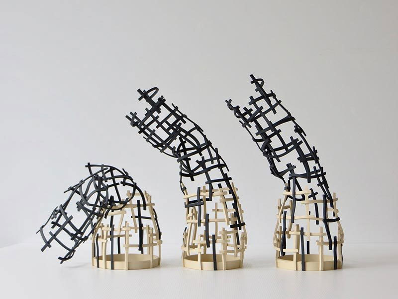 Me gusta describir mi técnica como “coser con el barro”. Las finas planchas de arcilla son la tela que corto en hilos para construir estructuras llenas de costuras, igual que una modista trabajando con su maniquí.