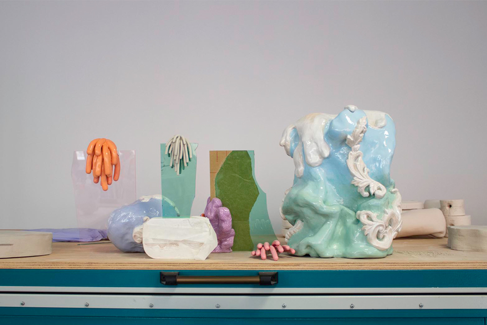 Los elementos de Estética fortuita nacen de manera relacional, habitando un limbo entre lo natural y lo artificial; reconocemos en ellos rastros de organismos que existen —plantas marinas o terrestres, moluscos, etc— al mismo tiempo que vemos la intrusión de estilos decorativos presentes en la tradición cerámica de Alcora. Es en las fronteras de esta exploración donde nacen sus formas atemporales, oníricas y fantásticas, las cuales nos obligan a cuestionar y revisar nuestro anquilosado imaginario formal.