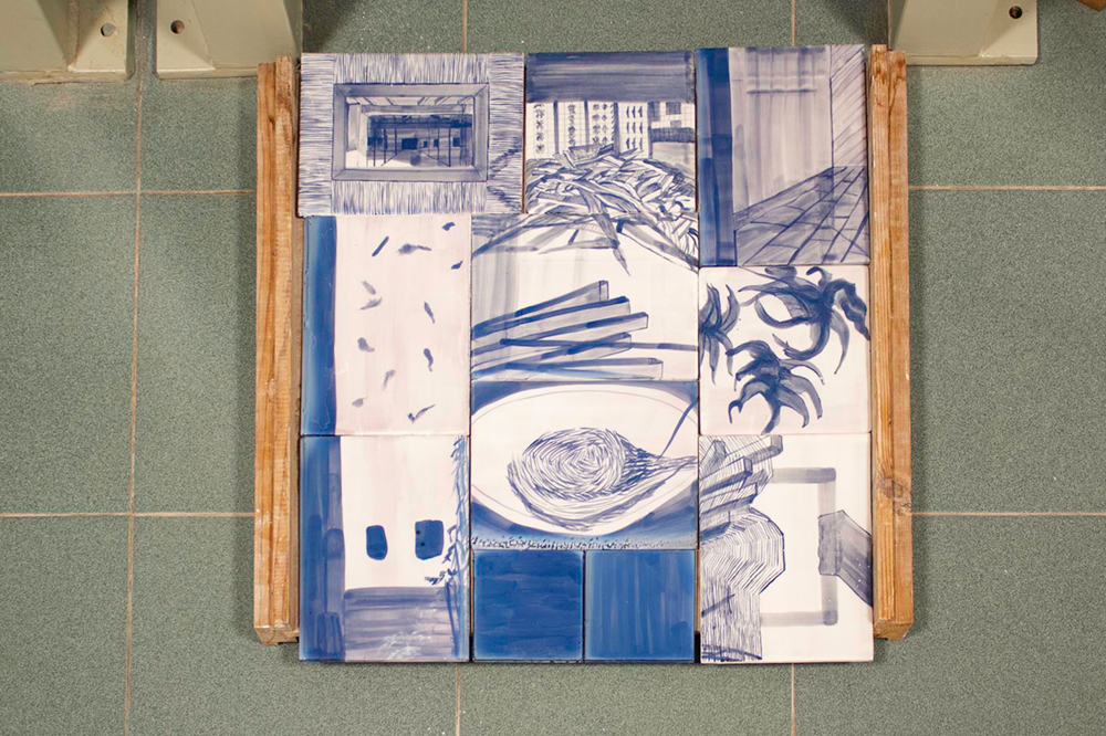 En otras obras he querido interpretar la decoración de la azulejería industrial, y he realizado varias obras utilizando azulejos recogidos en las ruinas de la Real Fábrica, que he insertado en nuevas formas mezclando el pasado y el presente en una nueva obra contemporánea.